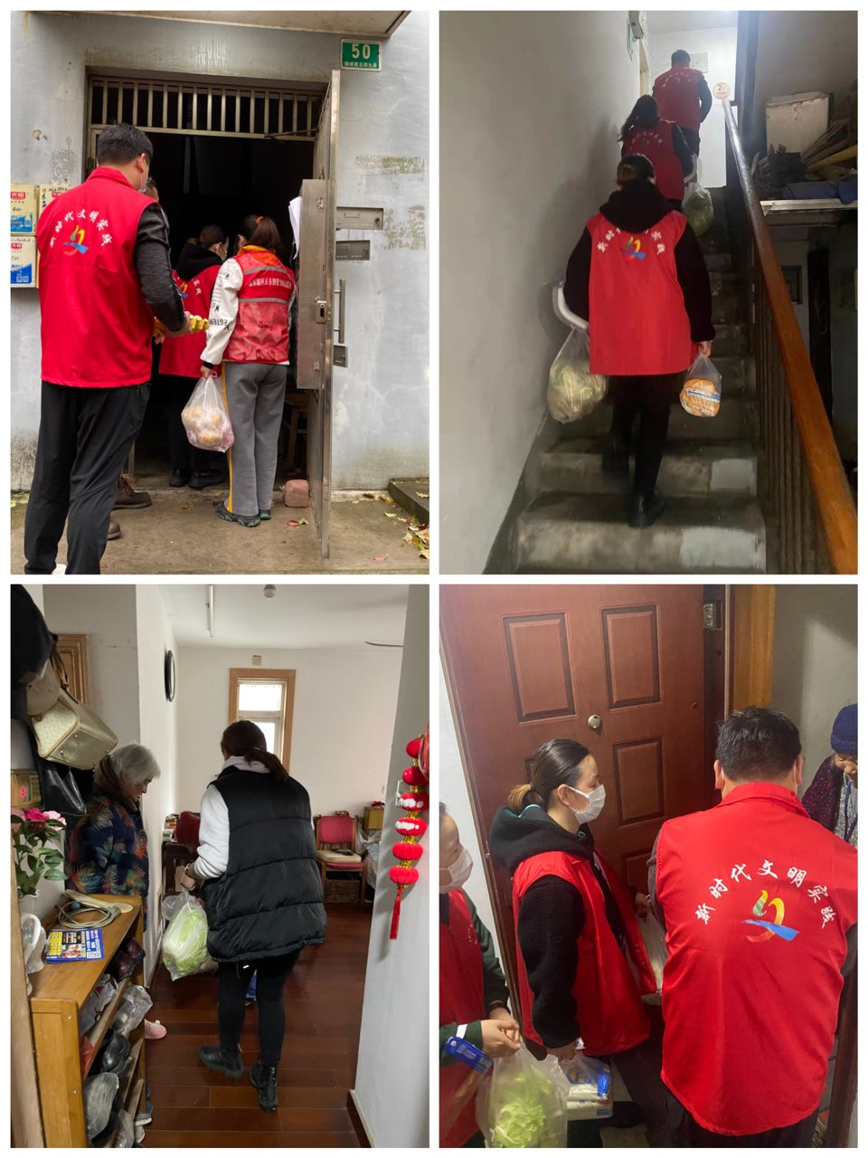 身穿红马甲的志愿者们拎着一袋袋蔬菜,冒着风雨奔走在一幢幢楼栋之间,不辞辛苦地爬楼梯上上下下,将“爱心菜”送到孤寡、独居老人手里,为他们解决燃眉之急,让他们感受到别样的关爱和温暖。一声声真诚的感谢,让志愿者们心中也充溢着一股股暖流。